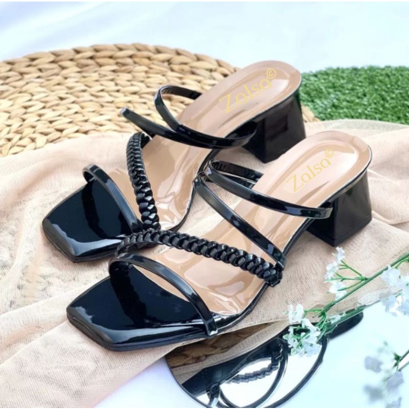 Detail High Heels Wanita Sandal Hak 5CM Kepang Silang D 03