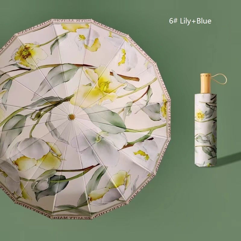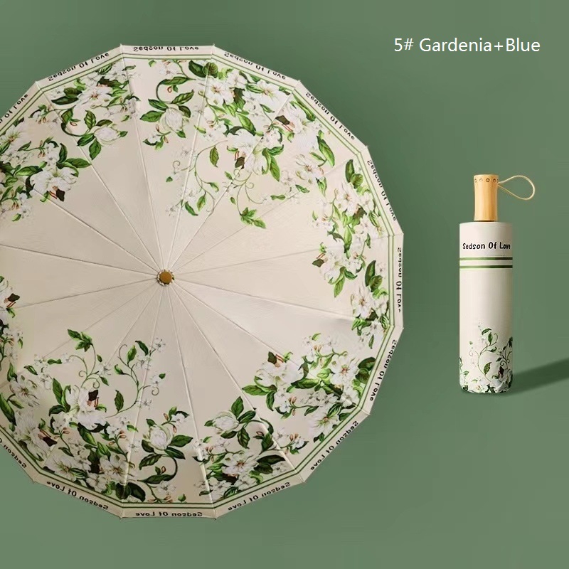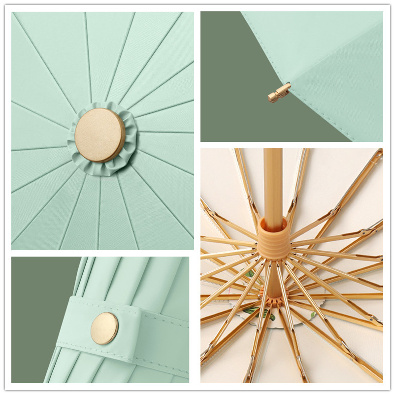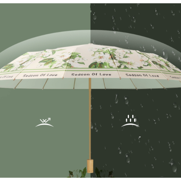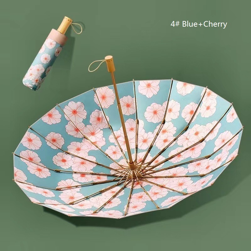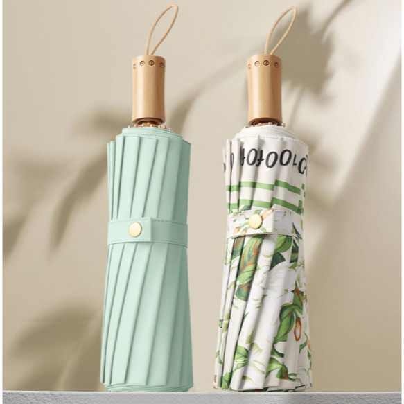 Perlengkapan Rumah > Payung > Payung Lipat > High Quality 16iga Motif Warna Warni Dan Bunga UPF50+Payung Gagang Kayu Tahan Badai Besar Anti Umbrella Matahari Hujan Payung UV Lipat