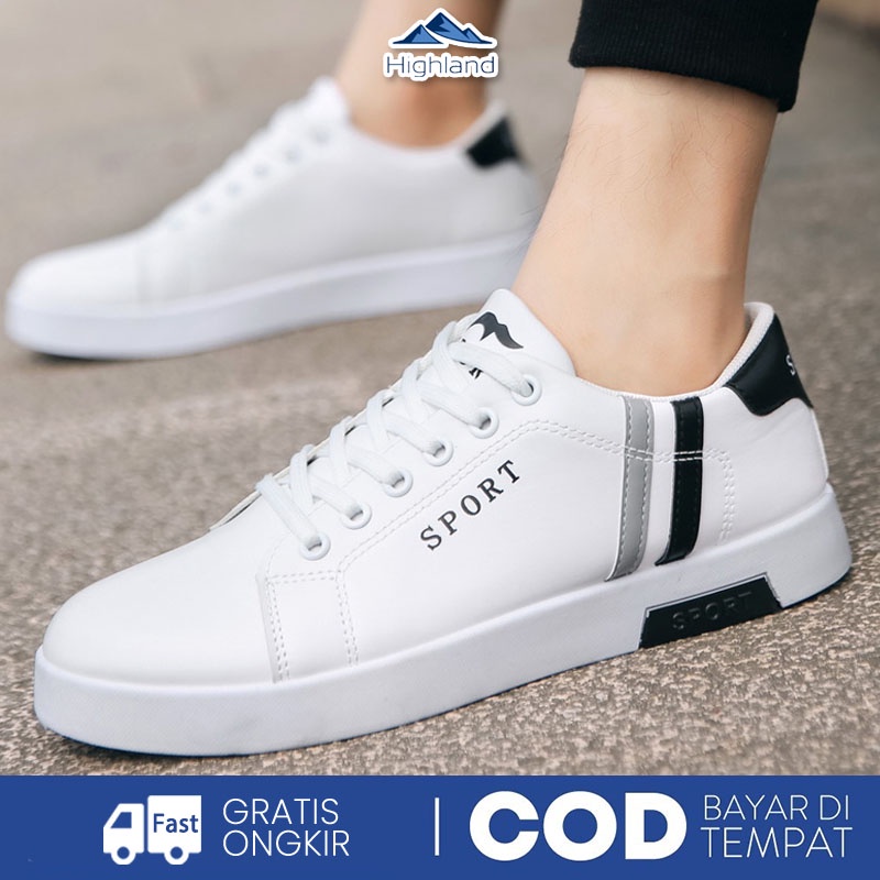 Detail Highland Sepatu Sneakers Pria Casual Sepatu Tali Putih Fashion Keren Sepatu Trendy Import KSC103