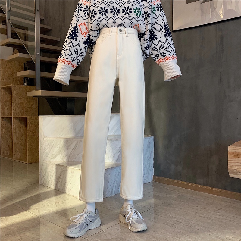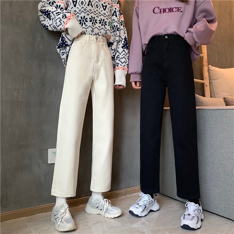 Detail Highwaist Fashion Celana Jeans Wanita Import Hitam / Krem