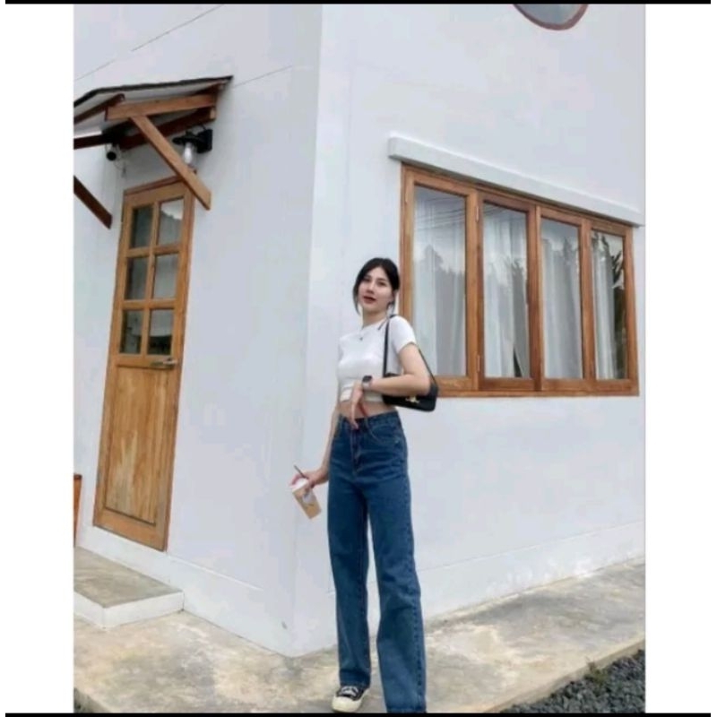 CELANA JEANS HIGHWAIST LOOSE SILANG BELAKANG CROSSBACK 2 KANCING