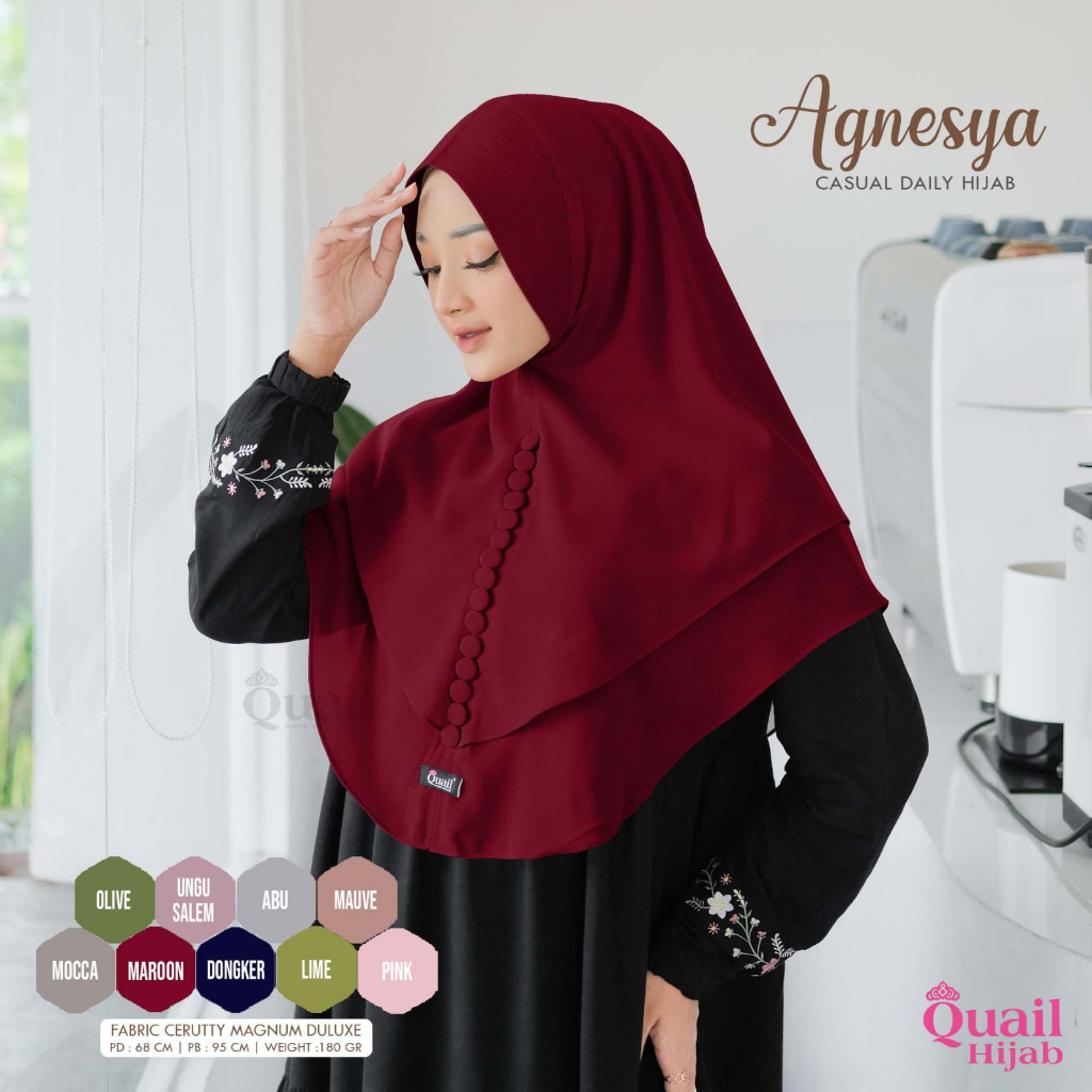 Detail Hijab Agnesya Khimar Polos Cerutty Original Quail