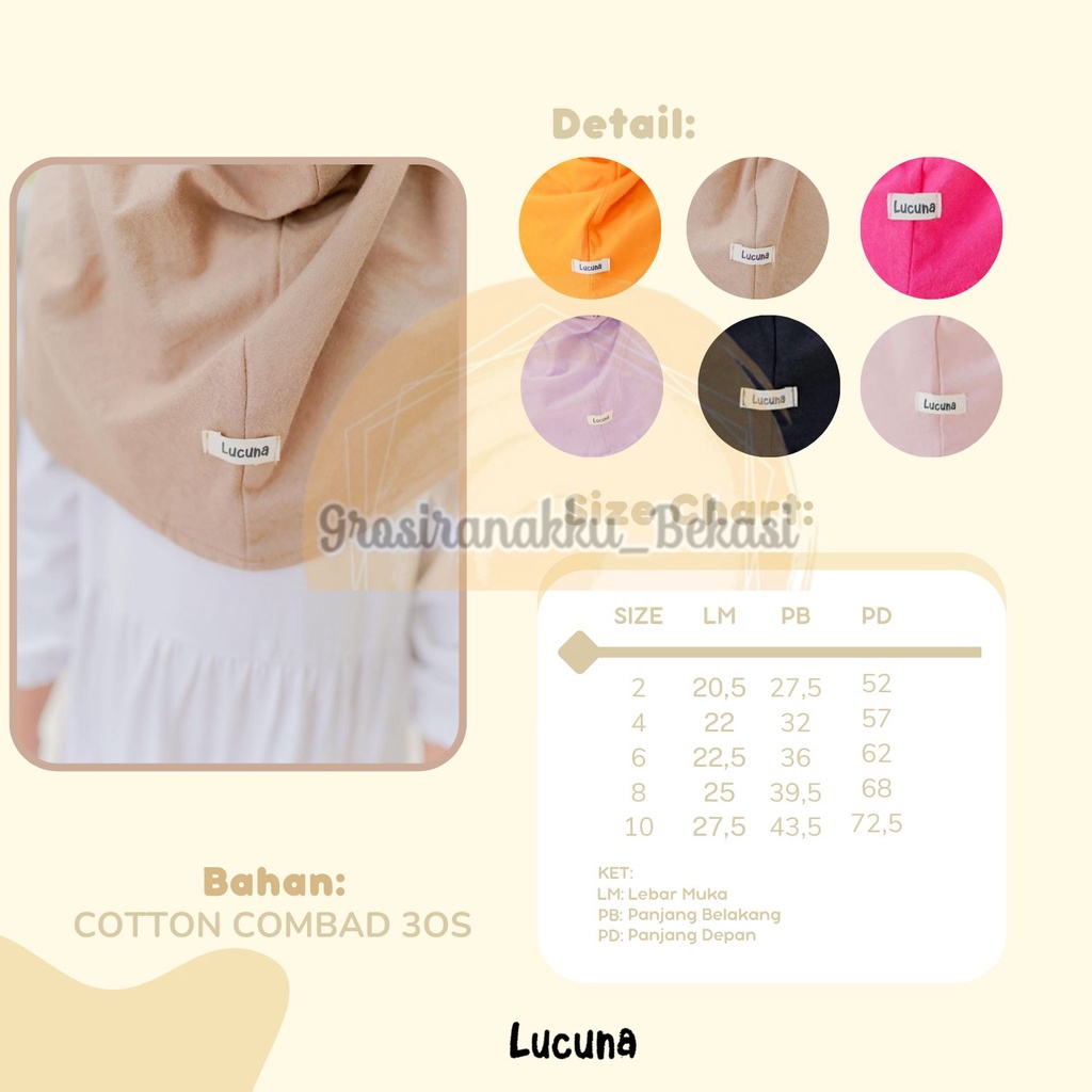 Detail Hijab Anak Instan Zahra Junior Lucuna Warna Lilac Size 2-10 TH