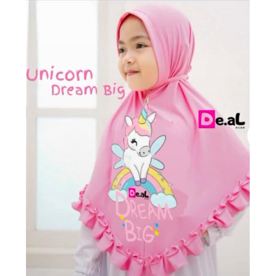 HIJAB ANAK INSTANT UNICORN DREAM BIG/ UNICORN SABLON ANAK ORI DE.AL HIJAB
