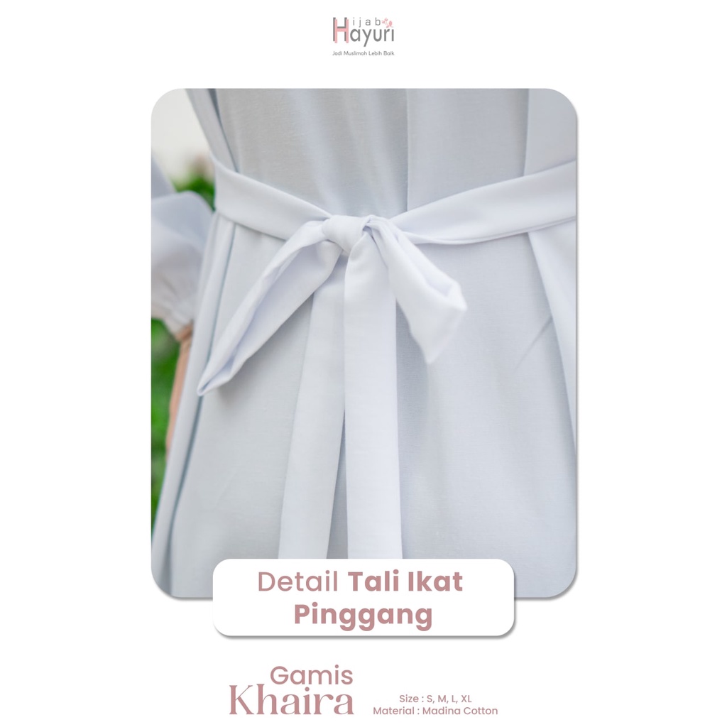 Keterangan : * Material Madina Cotton * Tanpa kerah * Resleting depan * Cutting dada * Tali ikat pinggang * Ada 2 saku kanan & kiri * Manset tangan karet * Ada 2 ploi depan gamis * Ada label & hang tag merek Hijab Hayuri