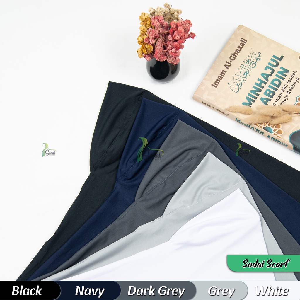 Detail : - Pj. Depan : 45 cm - Pj. Belakang : 55 cm - Lingkar wajah : 22 cm - Matt Jersey - Model Simple, Elegant - Flowly - Jahitan Tepi Rapi