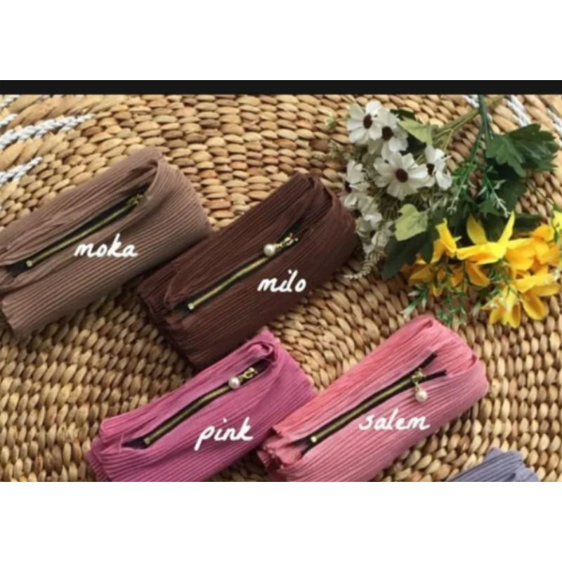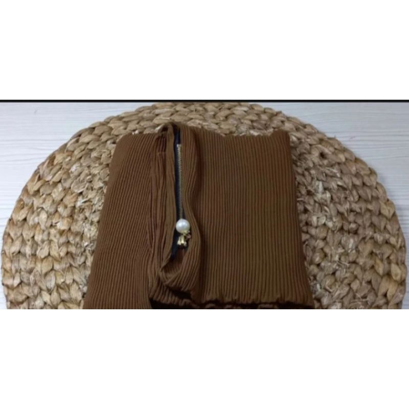 Detail jilbab / hijab instan pashmina plisket lidi full Zipper mutiara anti letoi