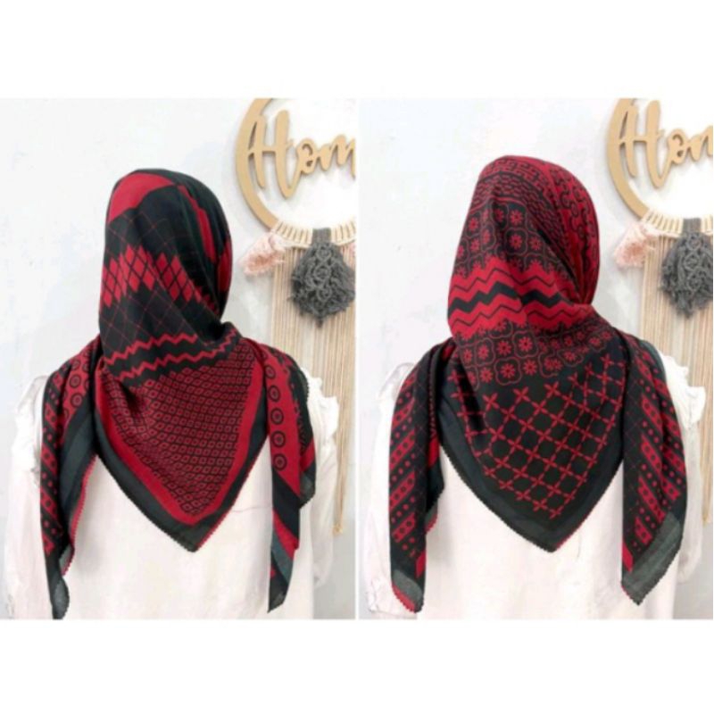HIJAB SEGI EMPAT MOTIF INJI MERAH || KERUDUNG SEGI EMPAT INJI MERAH