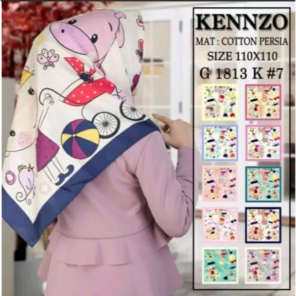 Detail HIJAB SEGIEMPAT KENZO MOTIF KARAKTER KERUDUNG SEGI EMPAT BAHAN KATUN / COTTON PERSIA BY HANA TURKEY HARGA TERMURAH