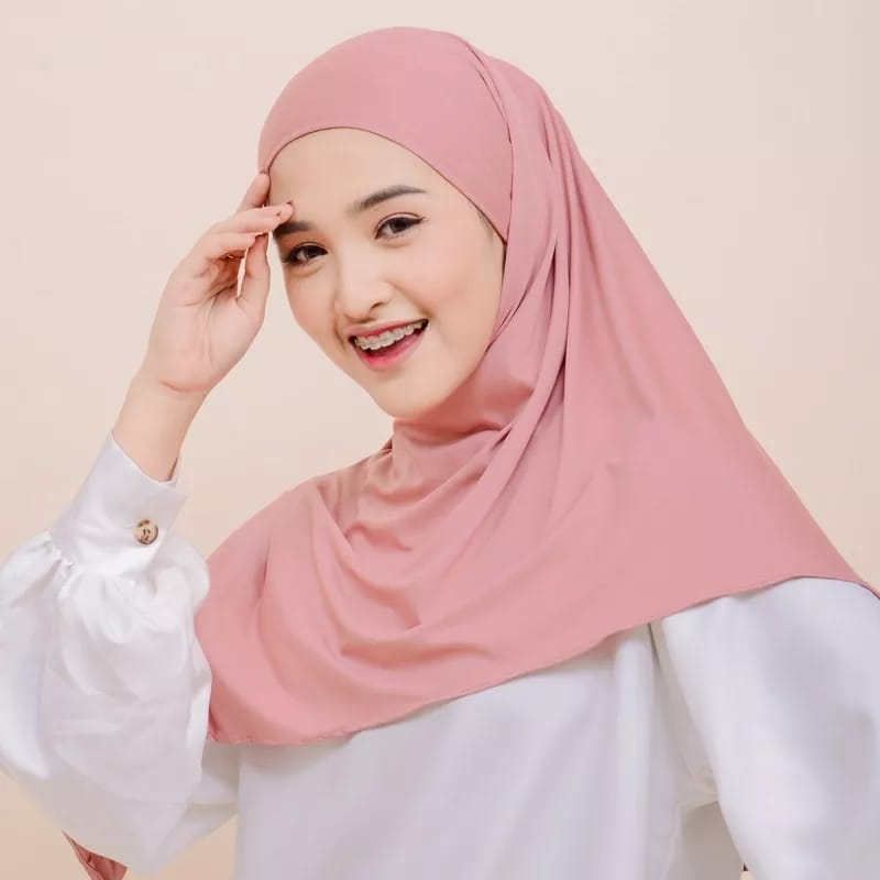 Detail Hijab Wanita Mara Segiempat Instan Tali Bahan Jersey Premium Hijab Instan