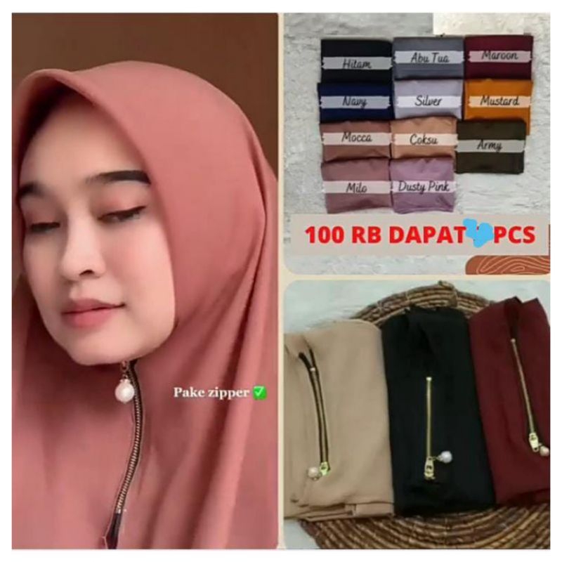 hijab Zipper Instan berbentuk segitiga, mudah di aplikasikan, bagian kepala tegak tidak loyo, zipper mutiara mewah juga kokoh tidak kendur, motif dan warna gemes gemes banget, bisa bisa makin Hits dengan motif yang jarang ada di pasaran 💜