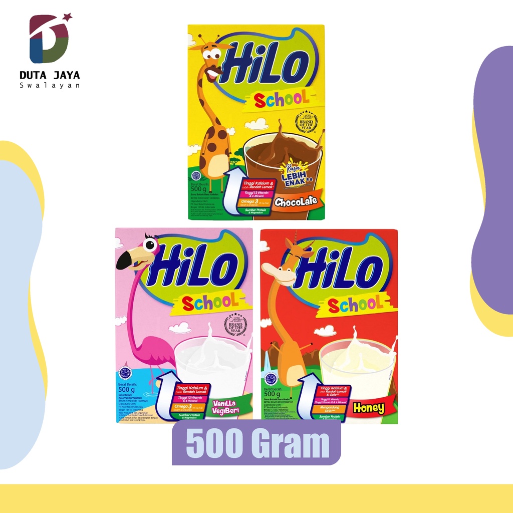 Detail Produk: - Hilo School Susu Bubuk - Ukuran: 500 Gram - Varian: Chocolate, Honey, Vanilla VegiBeri