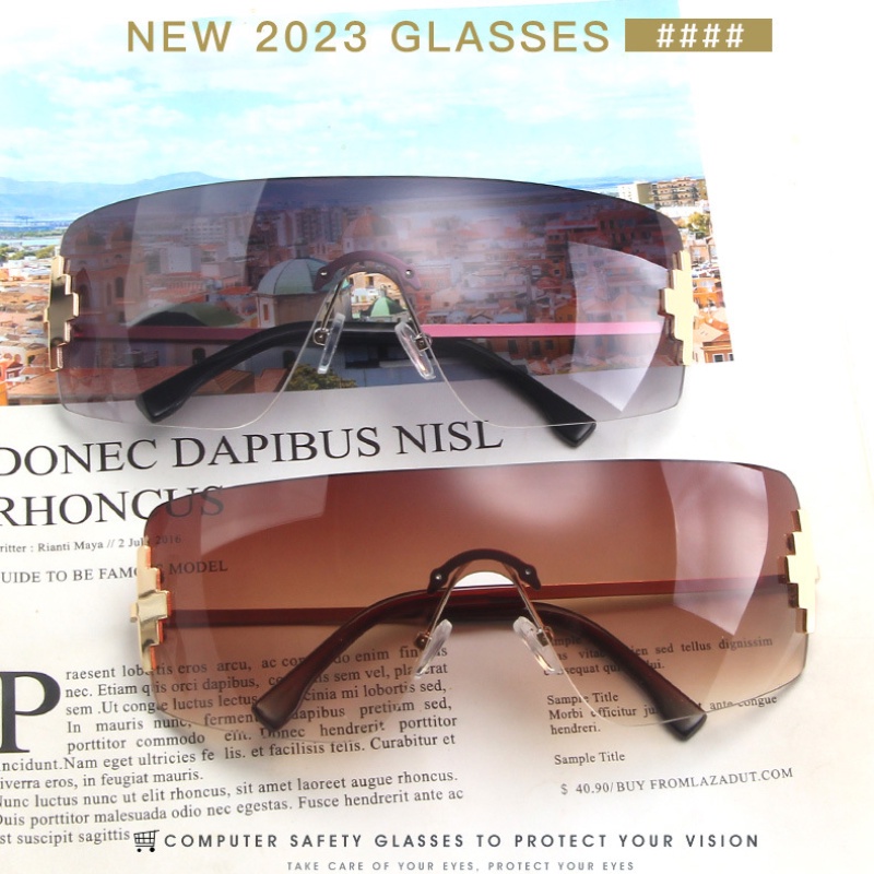 Detail Hip Hop Kacamata Hitam Tanpa Bingkai One Piece Untuk Pria Dan Wanita Bingkai Berbentuk T