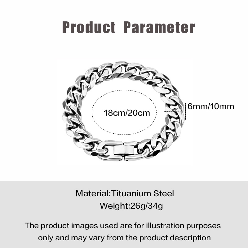 Merek: Perhiasan Mayebe Lavend Kategori Produk: Gelang Gaya: gaya sederhana: sederhana sederhana: sederhana Berlaku: unisex Bahan Produk: Baja titanium: Baja titanium Perak Perak Panjang rantai: 20 cm/18 cm Lebar: 6mm/10mm Berat produk: 28g/34g Buatan Cina Buatan China Daftar Produk: 1 × gelang