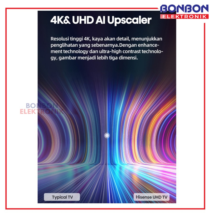 Paket Produk: 1 Unit TV 1 Remote standar 1 Standing Base1 Kartu Garansi Features : - Precision Colour - HDR - Ultra Dimming - Depth Enhancer - Bezelless Design - DTS Studio Sound - VIDAA SMART TV