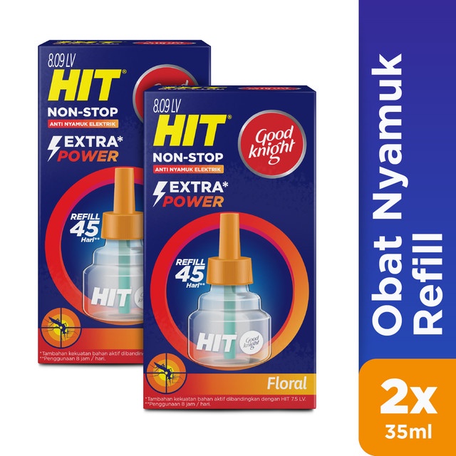 Hit Good Knight Non Stop Refill Floral adalah obat nyamuk elektrik berbentuk cairan konsentrat yang efektif mengusir nyamuk. Perlindungan menyeluruh selama 24 jam