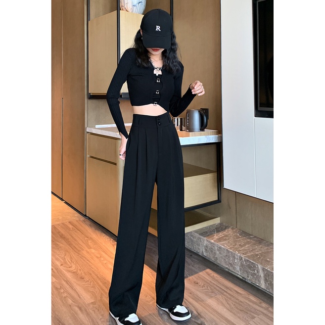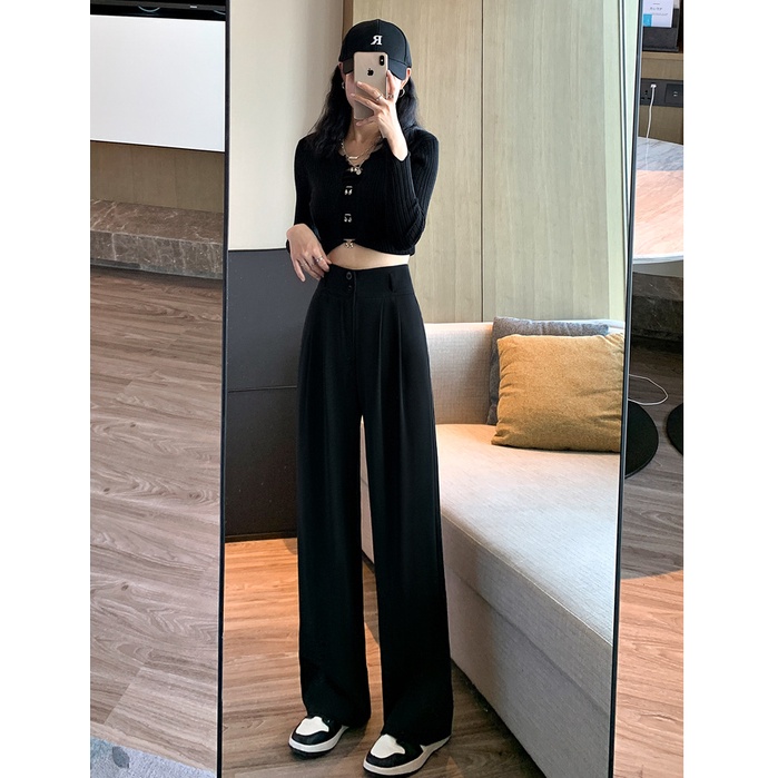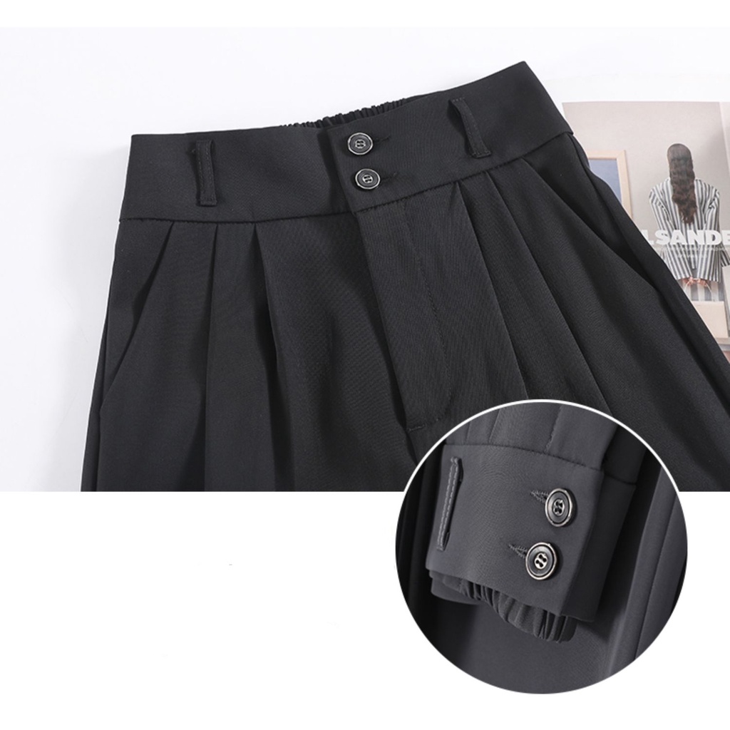 Detail Hitam Kulot Celana Panjang Wanita Highwaist Celana Cewek Kasual(Pinggang Elastis S-XXL)