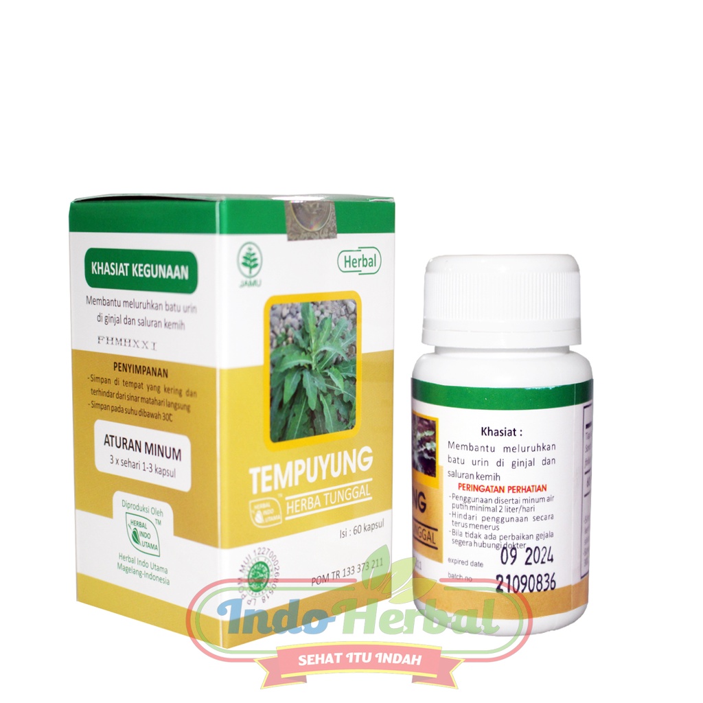 Kapsul Tempuyung merupakan Obat Herbal Khusus untuk Mengatasi berbagai masalah kesehatan dari Herbal Indo Utama yang terbuat dari bahan herbal 100% Alami dan tanpa bahan kimia apapun. Kapsul Tempuyung sangat berkhasiat dalam mengatasi berbagai penyakit sepertiBatu Ginjal, Batu empedu, radang usus Buntu, dll. Kandungan yang ada didalamnya yang alami menjadikannya sangat aman dikonsumsi dan tidak menimbulkan efek samping.