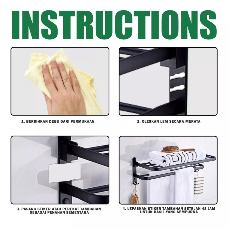 INSTRUKSI PENGGUNAAN 1. Bersihkan permukaan konstruksi untuk memastikan tidak ada minyak dan noda, jaga agar permukaan tetap bersih dan kering. 2. Tusuk nosel dengan paku pada tutupnya. 3. Oleskan lem secara merata pada permukaan. 4. Tekan sisi dengan lem ke sisi perekat dan tekan keduanya. 5. Tarik kedua sisi dan tekan lagi, ulangi tindakan ini selama 10 detik. 6. Tekan keduanya bersama-sama lagi dan ketuk dengan lembut di sepanjang sambungan. 7. Tempelkan selotip untuk menahan sementara dan lepaskan selotip setelah 48-72 jam.
