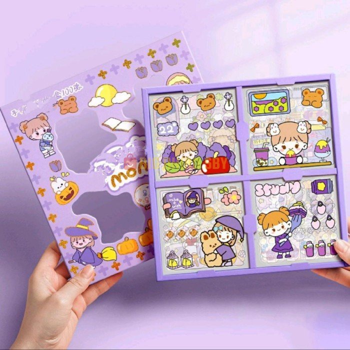 Sticker Momo 2D Aesthetic Motif Kartun Anti Air 1 Box 100 Lembar Stiker Sticker botol minum 2D