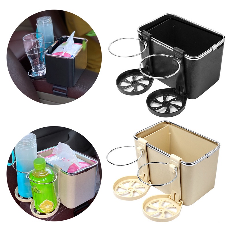 Perlengkapan Rumah > Organizer Rumah > Tempat Tisu > # HJ # Tempat Tissue Mobil Serbaguna Dengan 2 Cup / Holder Kotak Penyimpanan Botol Minum Multifungsi Storage Box Car