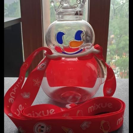 Botol minum yang sangat lucu, dengan motif boneka salju khas Mixue. Cocok dipakai untuk minuman segar seperti susu segar, milk tea, tea, ataupun infused water. Selain itu juga cocok dipakai sebagai pajangan (diisi butiran styrofoam putih atau kelereng)