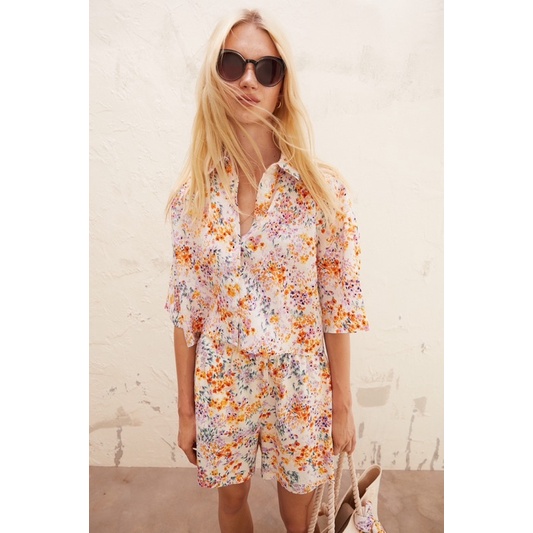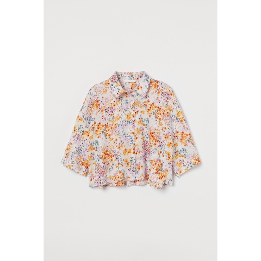 Pakaian Wanita > Atasan > Kemeja & Blouse > HM Linen Blend Crop Tshirt