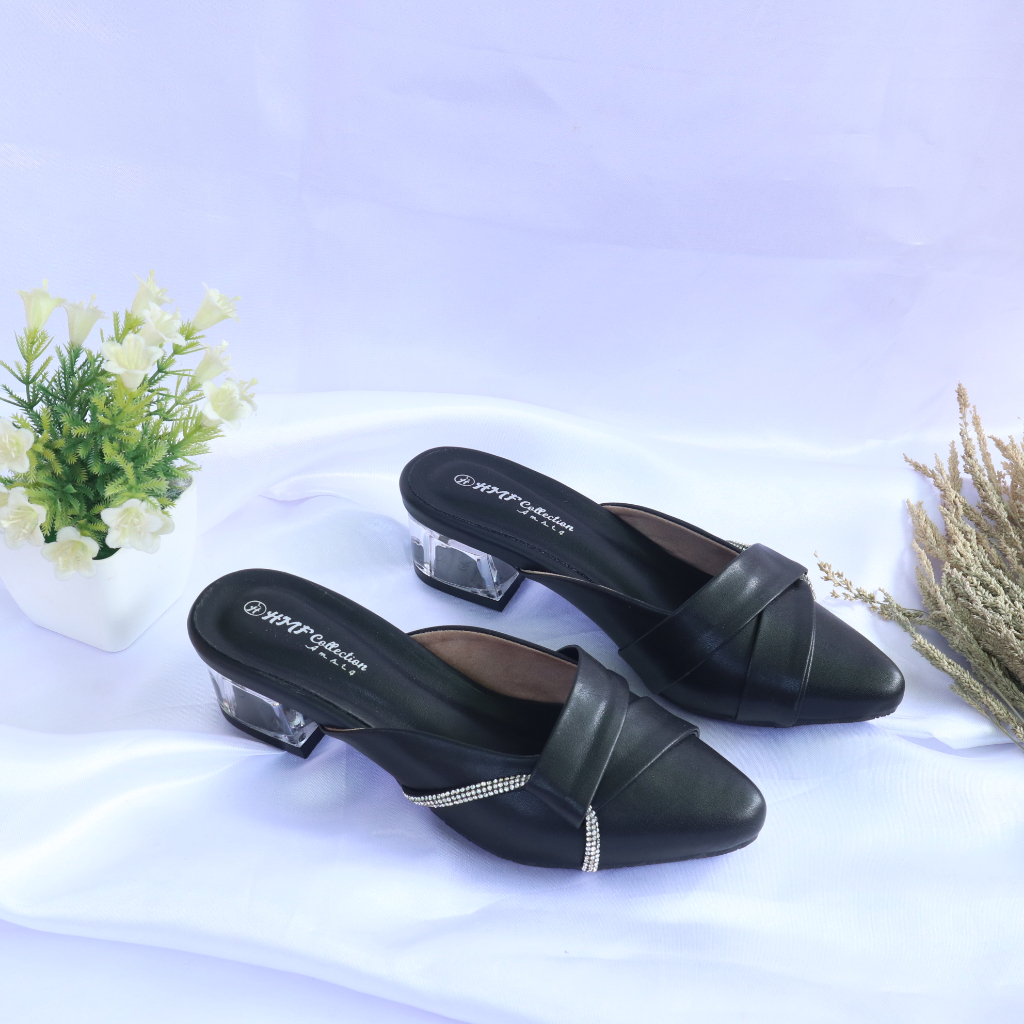 Detail HMF Saqila Sepatu Hak Mules Kaca Wanita VR801