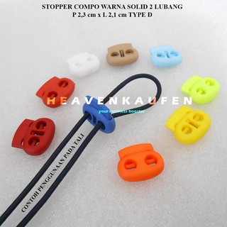 Stopper Tali Model Compo Dua Lubang PxL 2,3 cm x 2,1 cm Untuk Tali Maks 3 mm Warna Warni Solid Type C2