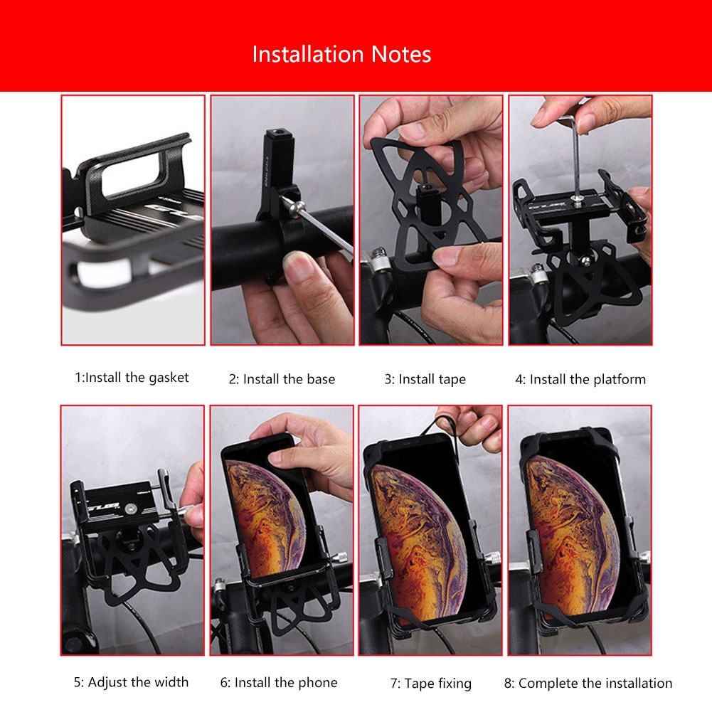 Paket termasuk: 1 x Dudukan Telepon Sepeda 1 x Batang pendukung 1 x Perban silikon (warna dikirim secara acak) 2 x Mesin Cuci (12 x 25,4 mm, 12 x 22,2 mm) 1 x kunci hex 1 x sekrup 2 x pita transparan 1 x sertifikasi 1 x panduan pengguna 1 x lem penyanggai