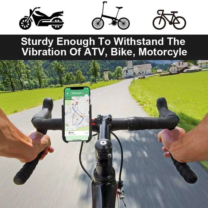 Keunggulan Produk : - Phone Holder terbuat dari logam premium, yang tahan lama dan tahan karat. - dilengkapi dengan bantalan silikon, yang tidak licin dan mencegah telepon rusak karena getaran. - Ada celah di bagian bawah dudukan, yang tidak menghalangi pengisian daya. - dapat disesuaikan 360 ยฐ, kompatibel dengan semua ukuran ponsel di pasar.