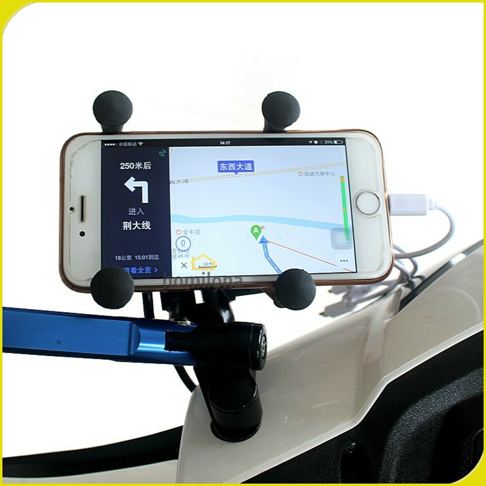 ๐ฃ ISI KEMASAN โ 1 x X-Grip Holder Motor Smartphone dengan USB 12V 2A - 006