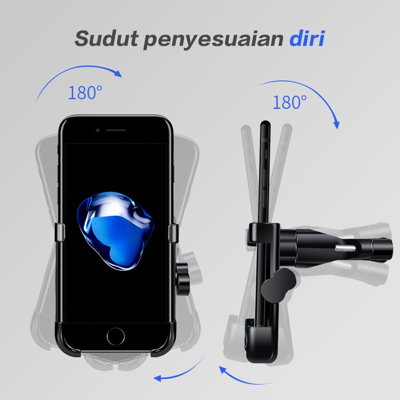 Phone holder stabil dengan bahan logam kelas atas sehingga kuat dan anti karat, dilengkapi dengan bantalan silikon yang ramah lingkungan sehingga anti slip melindungi handphone anda dari getaran dan bising tanpa merusak handphone. Tidak menghalangi waktu melakukan pengisian daya, dapat disesuaikan dengan diputar hingga 180 derajat, dengan kompatibilitas universal sehingga cocok untuk digunakan dengan ukuran handphone di pasaran Fitur: