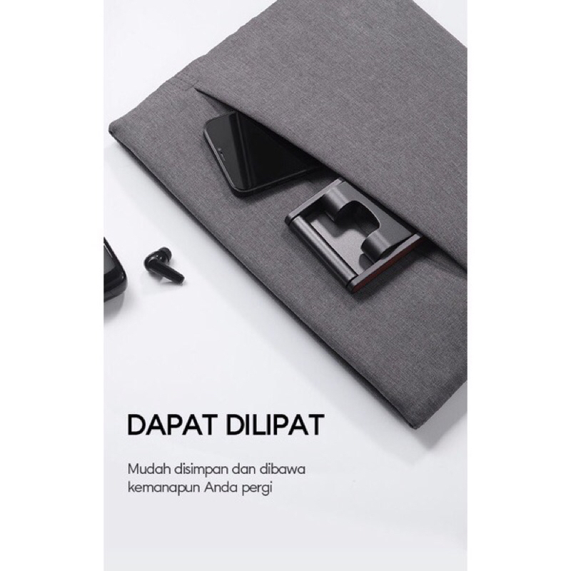 vivan holder stand vh01 Keunggulan: 1. Desain dual foldable. Saat dilipat holder akan berukuran kecil sehingga mudah disimpan dan dibawa kemana saja. 2. Material Full Aluminium alloy. Holder memiliki karakter kuat dan setiap permukaannya terasa halus sehingga nyaman saat digunakan. 3. Rotatable 360°. Pengguna dapat menyesuaikan angle sudut pandang holder sesuai dengan kebutuhan. 4. Setiap rotasi sudut yang dilakukan dijamin sangat stabil karena pada masing-masing ruas putaran telah dibekali oleh limit gear yang sangat presisi. 5. Untuk mendukung kenyamanan, pada bagian bawah holder telah dibekali pula dengan 4 silikon pad, agar holder tidak mudah bergeser atau licin ketika diletakkan di permukaan yang rata. 6. Pada bagian penopang holder telah dibekali pula dengan celah charger, untuk memudahkan akses kabel charger saat smartphone atau tablet yang diletakkan pada holder butuh direcharge. 7. Penopang holder dibekali dengan bezel yang tipis, sehingga tampilan layar smartphone atau tablet dapat terlihat penuh saat diletakkan pada holder. 8. Cocok untuk bermain game, menonton dan melakukan interaksi virtual (meeting atau kelas online) di rumah. 9. Dapat digunakan untuk smartphone atau tablet berukuran besar.