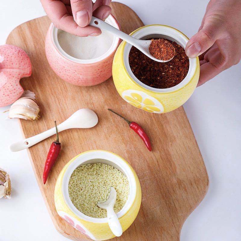 Perlengkapan Rumah > Peralatan Dapur > Tempat Penyimpanan Makanan > Holiven Gaya Jepang Keramik Bumbu Jar Set Perlengkapan Dapur Rumah Tangga Kotak Bumbu Kombinasi Bumbu Botol Buah Jar lard jar