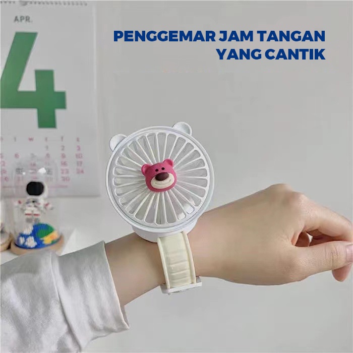 Handphone & Aksesoris > Handphone & Tablet Aksesoris > Kipas USB > Holiven Jam tangan kipas kecil dengan pergelangan tangan mini yang dapat diisi ulang siswa olahraga luar ruangan berangin usb beruang lucu