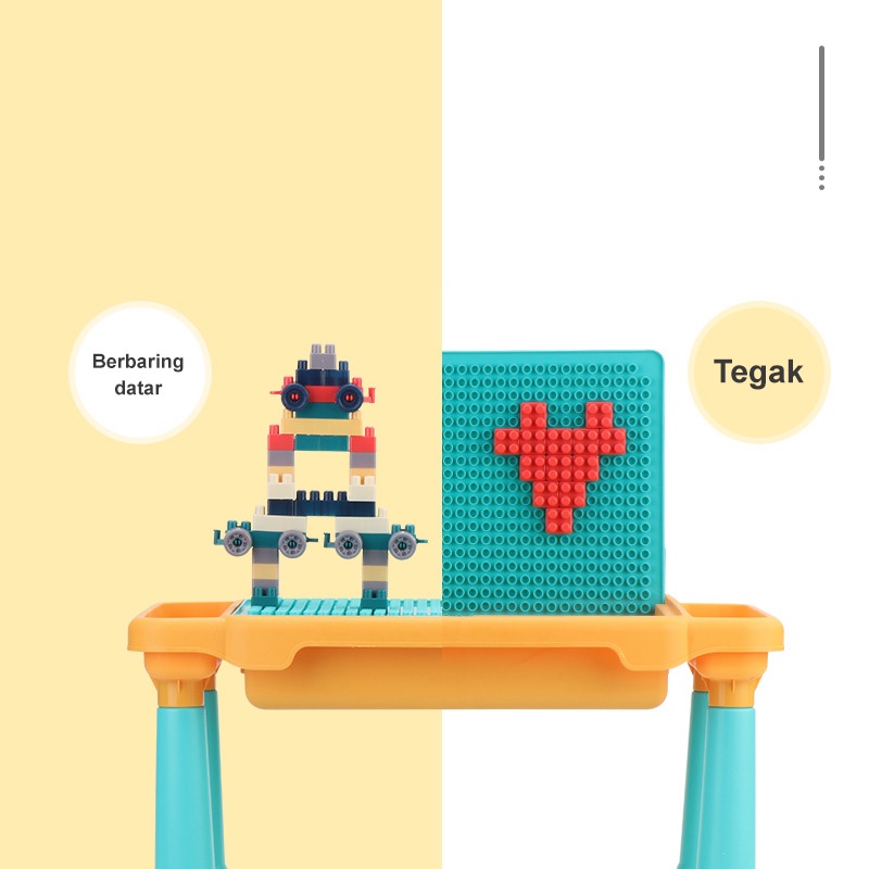 Tidak hanya dapat dirakit, tetapi dapat berbaring dan berdiri untuk membangun keterampilan baru: datar dan tegak Ada sesuatu di ruang penyimpanan berkapasitas besar: blok bangunan mudah disimpan dan tidak berantakan