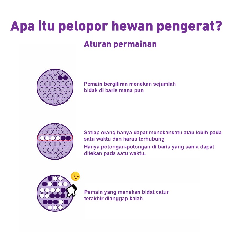 Aturan permainan: - Pemain bergiliran menekan sejumlah tikus yang mereka inginkan dalam satu baris. - Setiap pemain dapat menekan 1 buah pada satu waktu, juga dapat menekan banyak buah, harus terhubung - Harus menekan baris yang sama pada waktu bersamaan - Pemain yang menekan tikus terakhir akan kalah pada ronde tersebut.