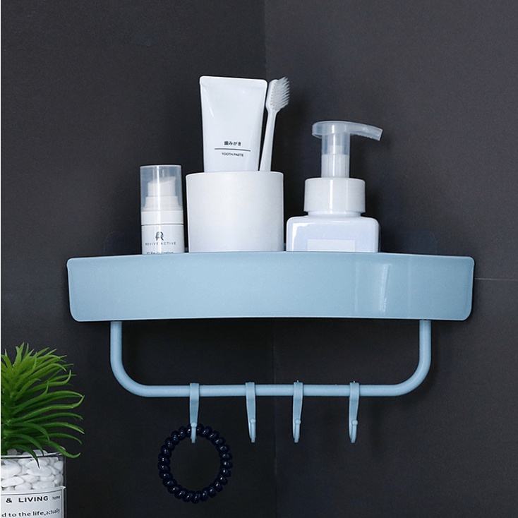 Nama Produk: Rak Penyimpanan Sudut Dinding Multifungsi Warna: Abu-abu, Putih, Biru, Biru muda Ukuran: 21*30*5.5 cm Berat: 164 gr Material: Plastik