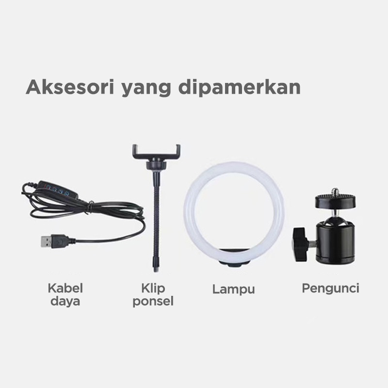 Ring Light ini memiliki diamater 10 Inchi dan bisa dirotasi 360 derajat sesuai keinginan anda. Ring light ini memiliki braket engsel yang bisa diatur tinggi rendahnya agar memudahkan dan membuat sesi pemotretan / pengambilan video anda terasa semakin menyenangkan dan praktis.