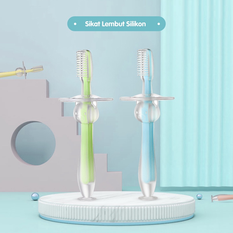 The small particle design on the back of the brush head can easily brush off the tongue coating and milk dirt, and "Massage" the delicate gums to relieve the baby's discomfort of teething.