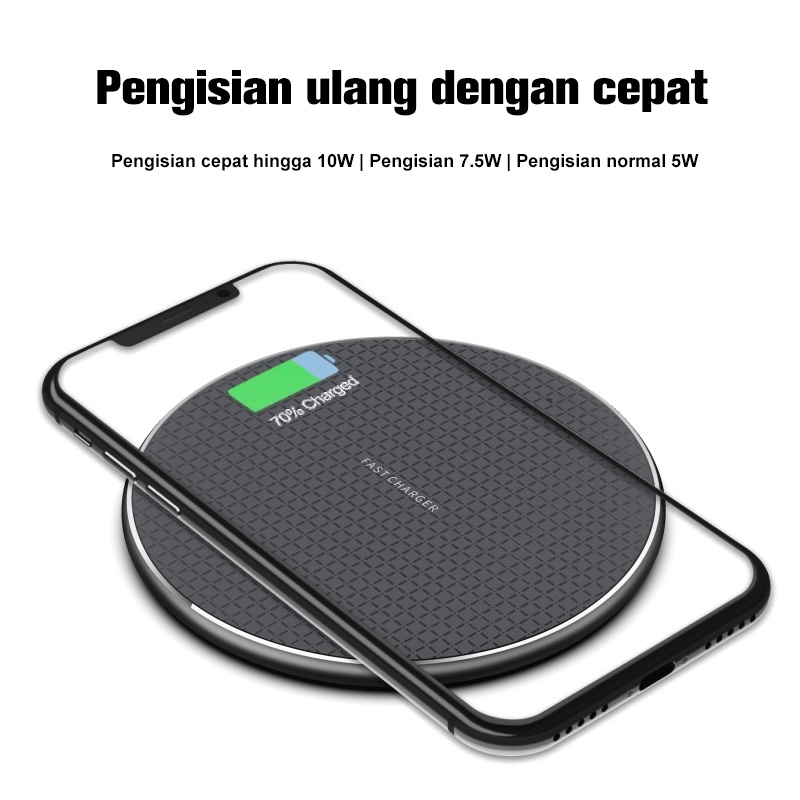 Wireless Fast Charger merupakan kantong yang dapat diisi dengan cepat, dan chip perlindungan pintar IC internal selalu terdeteksi.