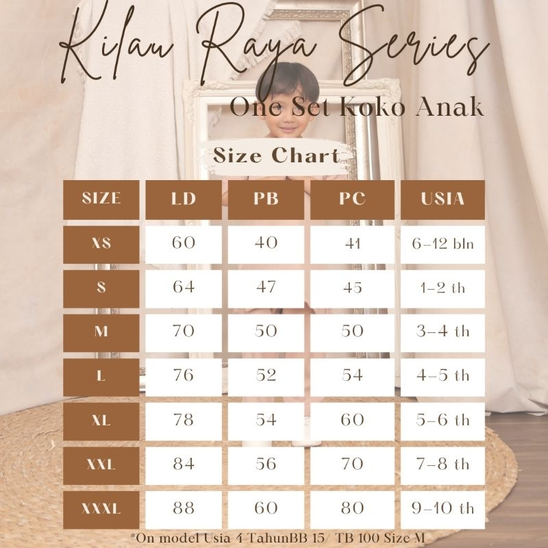 Harap diukur dengan seksama, umur jgn dijadikan 100% patokan dalam memilih size. Karena setiap anak ukuran badannya berbeda-beda. Mohon dimengerti 😊