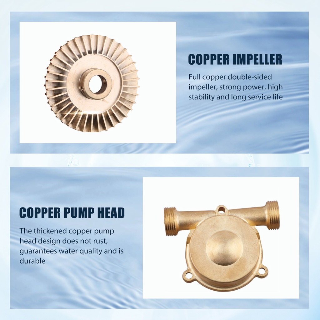 Fitur: 1. Tingkatkan tekanan air: kepala pompa tembaga murni, daya kuat, dan produk memiliki impeller multi-gigi dua sisi, daya ganda, daya angkat tinggi, aliran besar, sehingga tekanan air di dalam pipa lebih kencang dan kuat. 2. Otomatis on/off: Pompa penguat tekanan air dilengkapi dengan sakelar dan katup otomatis, dapat meningkatkan tekanan secara otomatis saat keran dibuka, dan mati saat keran ditutup. 3. Bahan kokoh: Badan pompa terbuat dari baja tahan karat dan kepala pompa terbuat dari tembaga yang menebal, menampilkan kekerasan tinggi, tahan aus, lebih kokoh dan tahan lama. 4. Aplikasi luas: Pompa penguat tekanan cocok untuk pipa air keran domestik, pemanas air tenaga surya, kamar mandi, toilet untuk meningkatkan tekanan air, atau bahkan kolam atau tangki ikan untuk meningkatkan oksigen. 5. Pengurangan kebisingan: Pompa memiliki suara mesin yang halus sehingga tidak berisik, kepala pompa tembaga murni mendukung perlindungan panas berlebih, ideal untuk digunakan di rumah. Dapat dihubungkan langsung dengan selang, operasi sederhana.