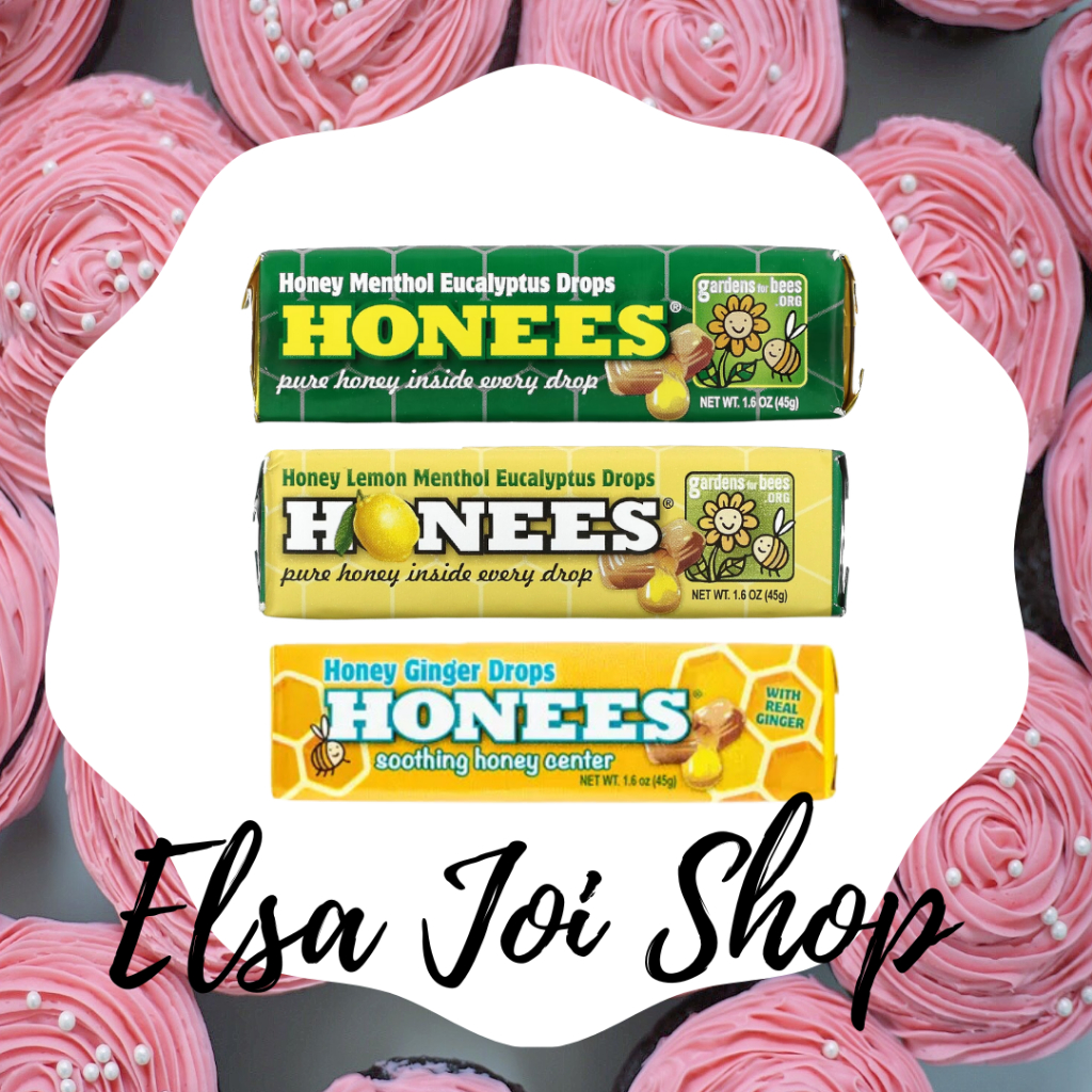 - HONEES Honey Ginger Drops : Shooting Honey Center. Pure honey paired with real Indonesian ginger.