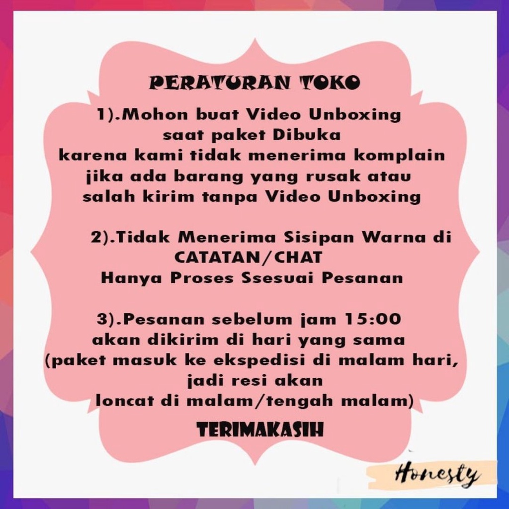 JANGAN LUPA BACA RULES TOKO KITA YA SEBELUM ORDER 🙏🙏🙏 💖💖💖Terimakasih & Happy Shopping 💖💖💖