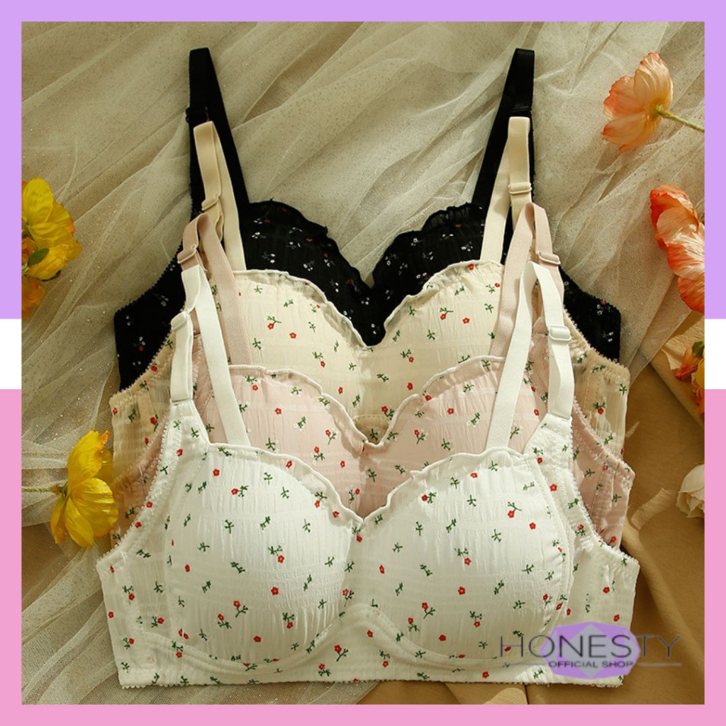 Detail Miss H ~ 246 Bra wanita Motif Bunga Musim Semi Sexy Fashion Korea Trendy Bh Women Tanpa Kawat Murah Import