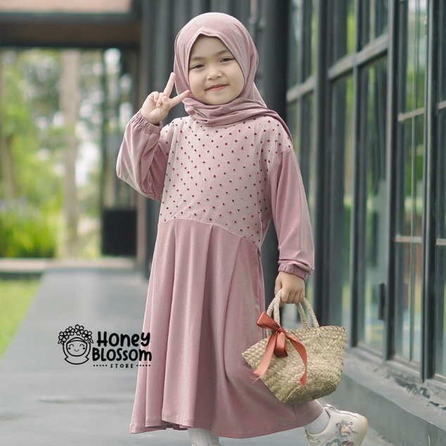 Keunggulan: - Bahan premium jersey korea yang dingin, lembut, dan adem untuk kulit si kecil - Sudah satu set gamis+hijab - Model gamis dengan cuttingan A-line yang nyaman dipakai si kecil yang aktif