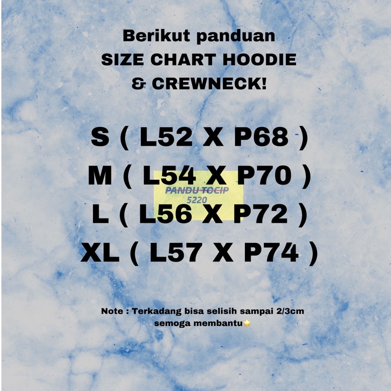 SIZE CHART : S L52 X P68 M L54 X P70 L L56 X P72 XL L57 X P74