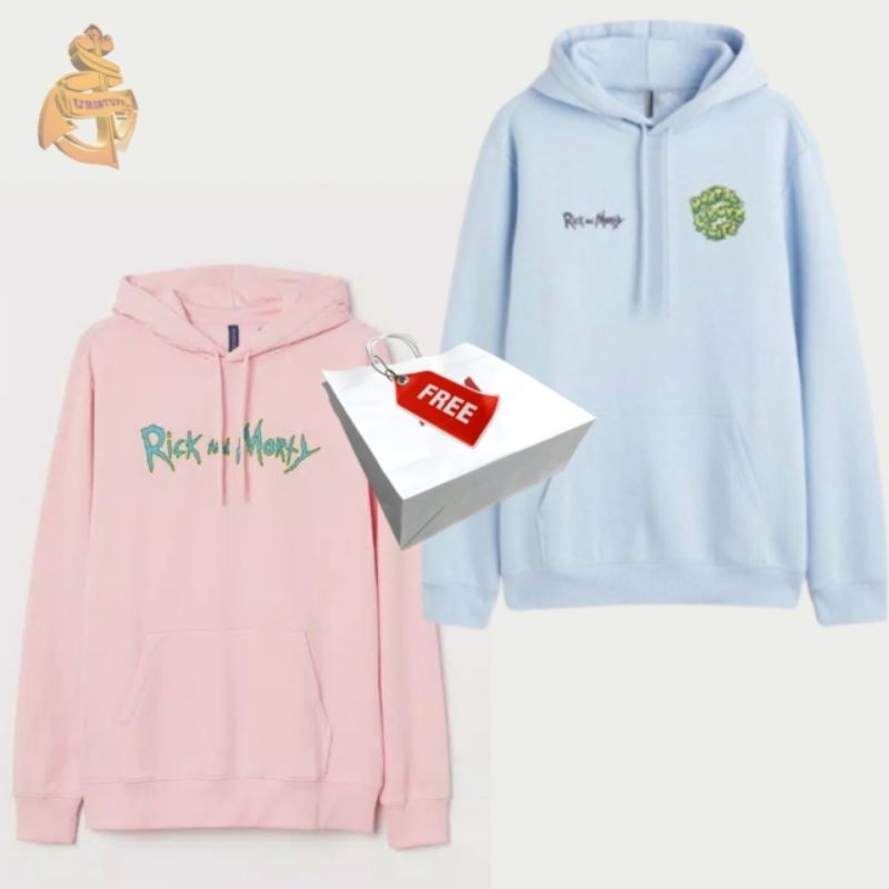 Detail Hoodie H&m Rick N Morty Pink Blue Hnm Pria Wanita Full Tag Free Paper Bag